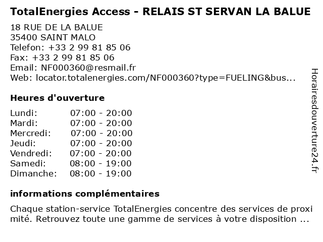 Termes de recherche pour TotalEnergies Access - RELAIS ST SERVAN LA BALUE:relais, la, st, access, total, gas station, servan, station service, tankstelle, totalenergies, balue |