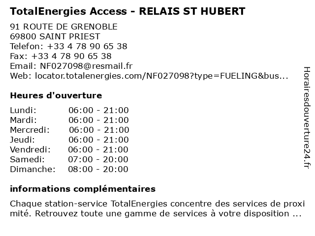 Termes de recherche pour TotalEnergies Access - RELAIS ST HUBERT:relais, st, access, total, hubert, gas station, station service, tankstelle, totalenergies |