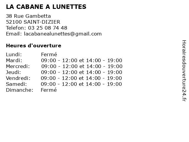 | Mardi | 09:00-12:00 et 14:00-19:00 |