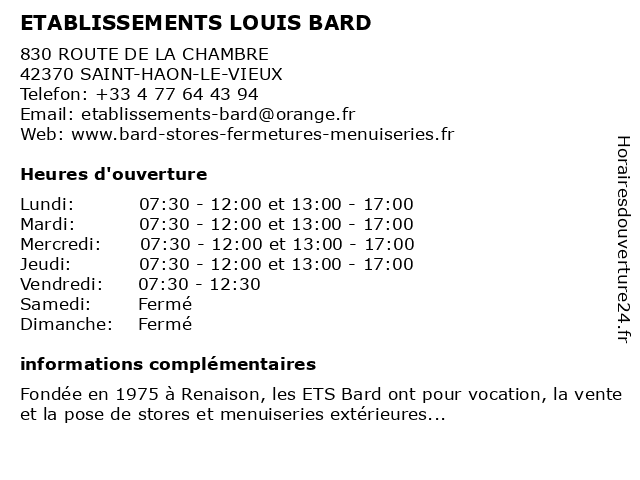 Termes de recherche pour ETABLISSEMENTS LOUIS BARD:louis, menuiserie, etablissements, bard, menuisier, storiste |
