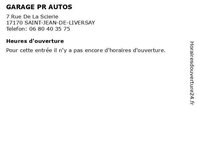| Appeler GARAGE PR AUTOS | |