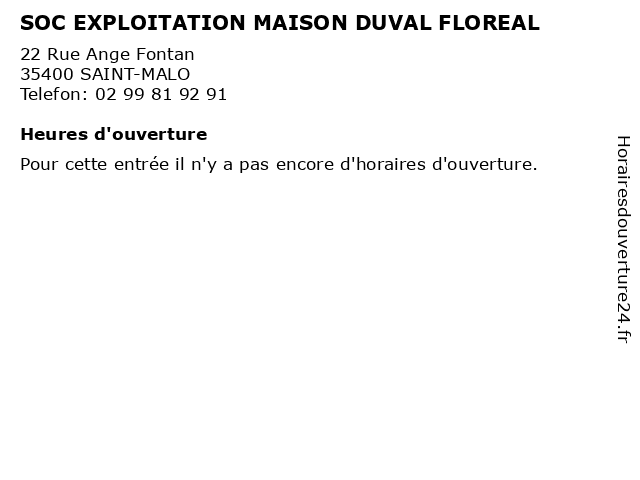 | Appeler SOC EXPLOITATION MAISON DUVAL FLOREAL | |