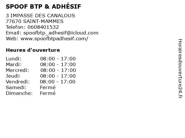 | Lundi | 08:00-17:00 |