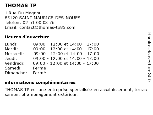Horaires d'ouverture |
