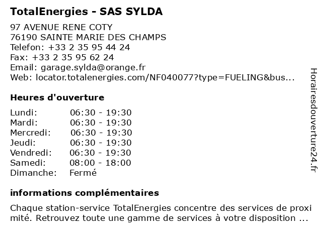 Termes de recherche pour TotalEnergies - SAS SYLDA:sas, total, gas station, station service, sylda, tankstelle, totalenergies |
