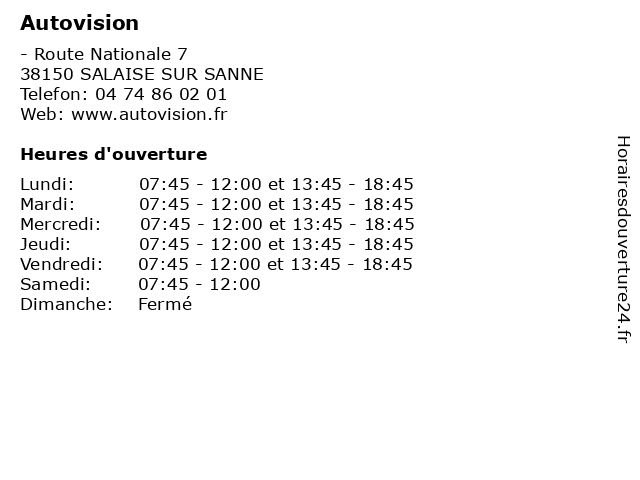 | Lundi | 07:45-12:00 et 13:45-18:45 |