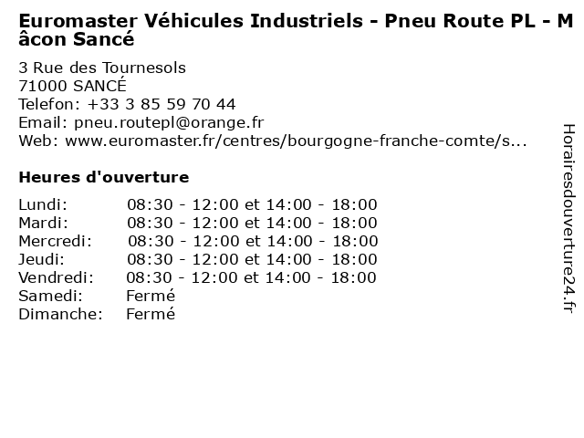 | Lundi | 08:30-12:00 et 14:00-18:00 |