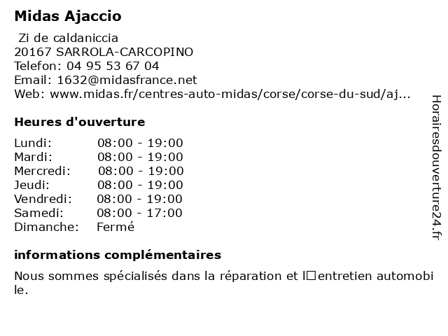 Termes de recherche pour Midas Ajaccio:midas, ajaccio, atelier de réparation automobile, service de climatisation automobile, magasin de pièces automobiles |