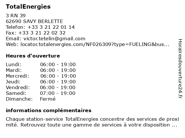 1 TotalEnergies - SARL LABBE (Distance: 12,97 km) 3 RUE D'HAILLICOURT, 62620 BARLIN gas station, labbe, sarl, station service, tankstelle, total, totalenergies 2 TotalEnergies - REL.SOUCHEZ (Distance: 13,87 km) A26 - AIRE DE SOUCHEZ, 62153 SOUCHEZ rel.souchez, station autoroute, totalenergies 3 TotalEnergies Station de recharge (Distance: 13,88 km) A26 A26, 62153 Angres borne de recharge, borne de recharge autoroute, borne de recharge rapide, ccs, chademo, charge haute puissance, charge+, charging station, de, ev, high power charge, ma charge rapide, mobility, recharge, recharger ma voiture, recharger voiture, station, station autouroute, station de recharge, station-service, supercharger, tankstelle, total, totalaccess, totalenergie, totalenergies 4 TotalEnergies Station de recharge (Distance: 13,88 km) A26 A26, 62153 Souchez borne de recharge, borne de recharge autoroute, borne de recharge rapide, ccs, chademo, charge haute puissance, charge+, charging station, de, ev, high power charge, ma charge rapide, mobility, recharge, recharger ma voiture, recharger voiture, station, station autouroute, station de recharge, station-service, supercharger, tankstelle, total, totalaccess, totalenergie, totalenergies 5 TotalEnergies - SAS KEOS SAINS EN GOHELLE BY AUTOSP (Distance: 14,51 km) 100 AVENUE FRANCOIS MITTERRAND, 62114 SAINS EN GOHELLE autosp, by, en, gas station, gohelle, keos, sains, sas, station service, tankstelle, total, totalenergies 6 TotalEnergies - RELAIS DE LA LAWE (Distance: 14,55 km) 864 RUE DE LA REPUBLIQUE, 62700 BRUAY LA BUISSIERE de, gas station, la, lawe, relais, station service, tankstelle, total, totalenergies |