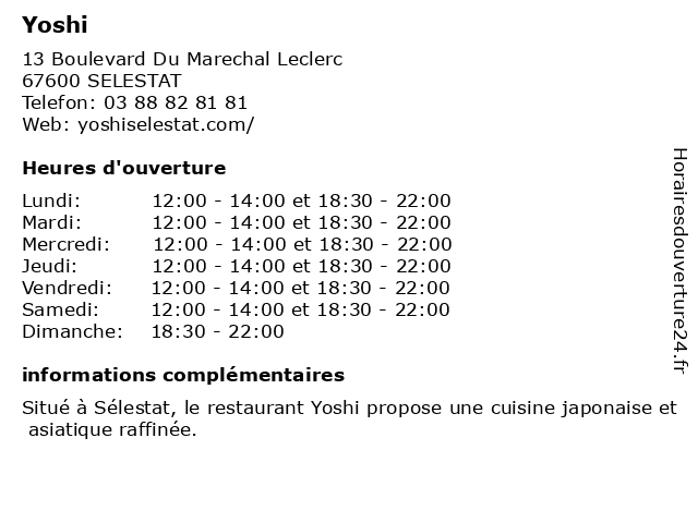 1 Yoshi (Distance: 0,01 km)13 Boulevard du Maréchal Foch, 67600 Sélestat yoshi