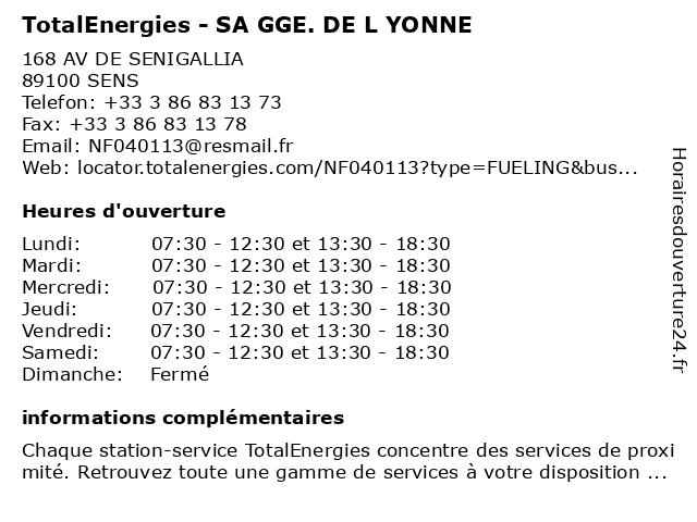 Termes de recherche pour TotalEnergies - SA GGE. DE L YONNE:de, yonne, sa, total, gas station, station service, tankstelle, totalenergies, gge. |