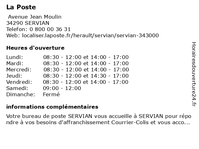 | Lundi | 08:30-12:00 et 14:00-17:00 |