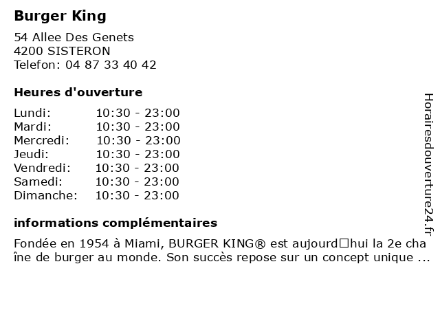 | Dimanche | 10:30-23:00 |