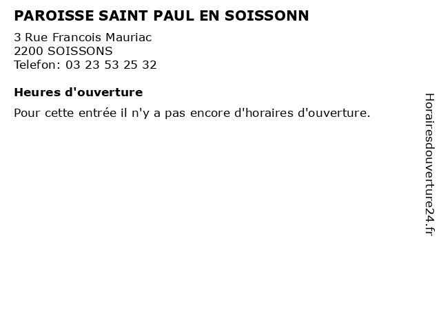 | Appeler PAROISSE SAINT PAUL EN SOISSONN | |