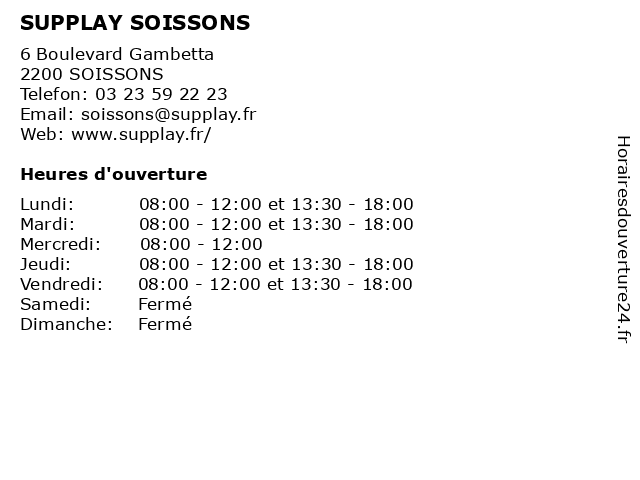 | Lundi | 08:00-12:00 et 13:30-18:00 |