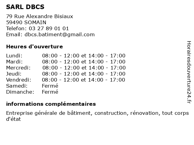 | Lundi | 08:00-12:00 et 14:00-17:00 |