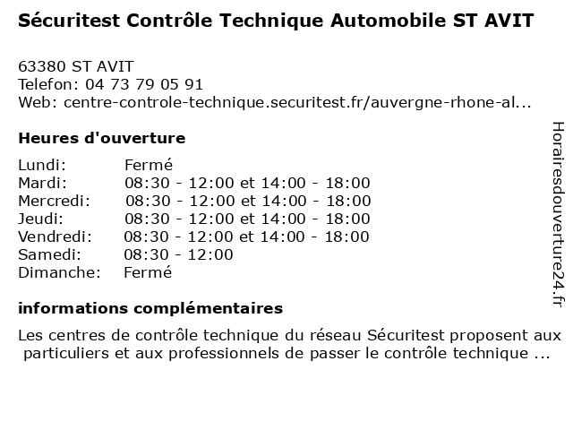 Termes de recherche pour Sécuritest Contrôle Technique Automobile ST AVIT:automobile, st, securitest, controle, technique, avit |