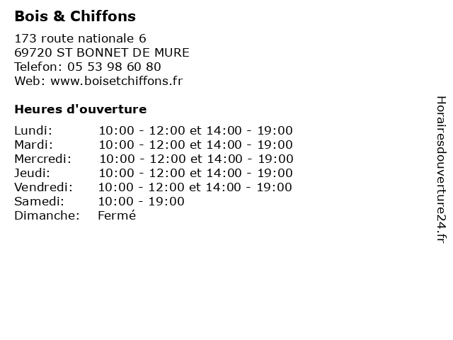 | Mardi | 10:00-12:00 et 14:00-19:00 |