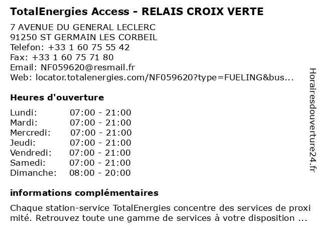 Termes de recherche pour TotalEnergies Access - RELAIS CROIX VERTE:relais, croix, access, total, verte, gas station, station service, tankstelle, totalenergies |