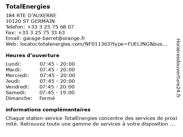 | Samedi | 07:45-19:00 |