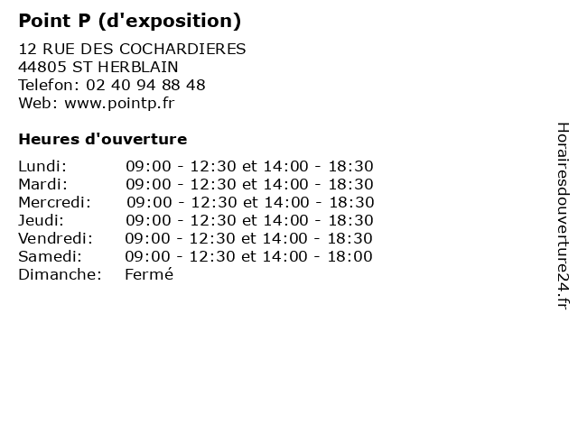 | Samedi | 09:00-12:30 et 14:00-18:00 |