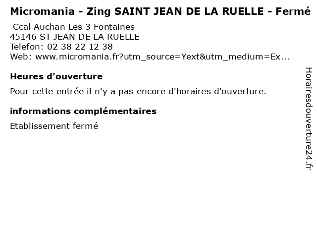 | Appeler Micromania - Zing SAINT JEAN DE LA RUELLE - Fermé | |