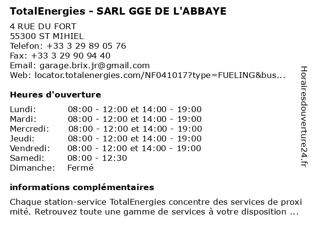 Termes de recherche pour TotalEnergies - SARL GGE DE L'ABBAYE:de, sarl, total, gge, l'abbaye, gas station, station service, tankstelle, totalenergies |