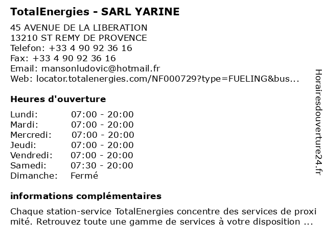 Termes de recherche pour TotalEnergies - SARL YARINE:sarl, total, gas station, station service, yarine, tankstelle, totalenergies |