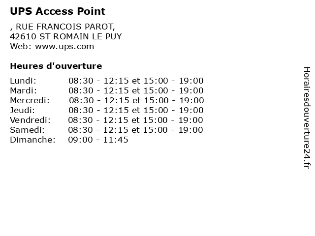 1 UPS Access Point (Distance: 7,85 km) 13 RUE DU FAUBOURG DE LA MADELEINE,, 42600 MONTBRISON access, commerce international, expédition internationale, fret, packaging supplies, petites entreprises, point, ups 2 UPS Access Point (Distance: 7,93 km) 18 RUE DU 11 NOVEMBRE,, 42450 SURY LE COMTAL access, commerce international, expédition internationale, fret, packaging supplies, petites entreprises, point, ups 3 UPS Access Point (Distance: 11,03 km) 13 RUE ARISTIDE BRIAND,, 42160 ANDREZIEUX BOUTHEON access, commerce international, expédition internationale, fret, packaging supplies, petites entreprises, point, ups 4 UPS Access Point (Distance: 11,38 km) 2 RUE DU 11 NOVEMBRE,, 42340 VEAUCHE access, commerce international, expédition internationale, fret, packaging supplies, petites entreprises, point, ups 5 UPS Access Point (Distance: 12,60 km) 62 RUE JOANNES BEAULIEU,, 42170 ST JUST ST RAMBERT access, commerce international, expédition internationale, fret, packaging supplies, petites entreprises, point, ups 6 UPS Access Point (Distance: 15,21 km) 12 PLACE DE LA REPUBLIQUE,, 42380 ST BONNET LE CHATEAU access, commerce international, expédition internationale, fret, packaging supplies, petites entreprises, point, ups |