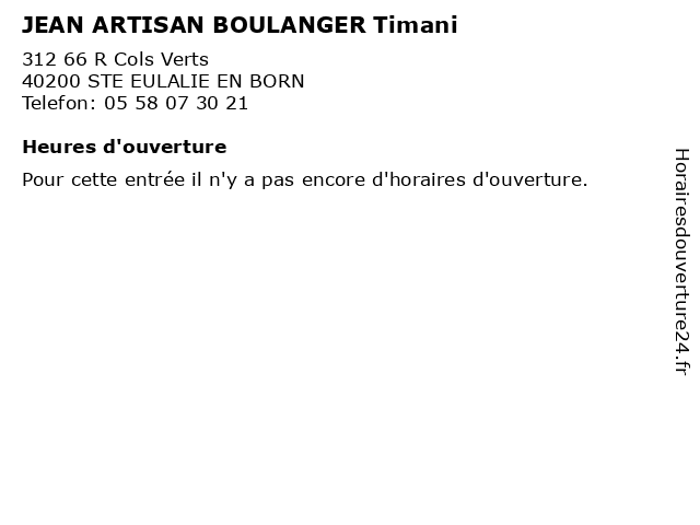 | Appeler JEAN ARTISAN BOULANGER Timani | |