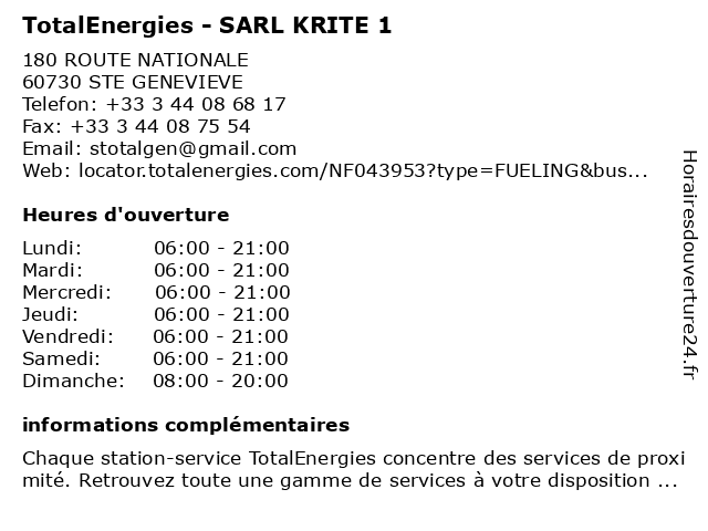 Termes de recherche pour TotalEnergies - SARL KRITE 1:sarl, total, gas station, station service, krite, tankstelle, totalenergies |