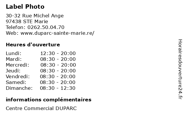 1 Label Photo (Distance: 0,36 km) 1 Centre commercial Duparc, 97438 Sainte-Marie 974, label, magasin, photo, réunion 2 Borne d'impression photo Speedlab (Distance: 1,93 km) 75 Rue du Souvenir, 97490 Sainte-Clotilde borne, d'impression, photo, speedlab 3 Borne d'impression photo Speedlab (Distance: 19,87 km) 94 Rue Mahatma Gandhi, 97419 La Possession borne, d'impression, photo, speedlab 4 Librairie Arc en Ciel (Distance: 3,53 km) 21 Avenue Pierre Mendes France, 97490 Sainte-Clotilde arc, avril, ciel, en, fax, février, librairie, mars, novembre, octobre, photo, reliure, septembre, tirage 5 Camara (Distance: 7,09 km) 12 Rue Victor Mac Auliffe, 97400 Saint-Denis La Réunion accessories, audio, camara, camcorders, photo, printing, video 6 Photo Eclair (Distance: 27,87 km) 36 Rue Suffren, 97460 Saint-Paul 974, eclair, photo, réunion, studio |