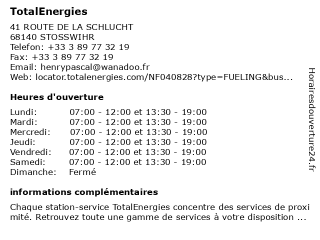 | Samedi | 07:00-12:00 et 13:30-19:00 |