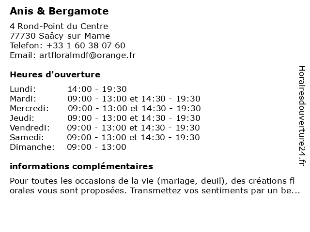 Samedi | 09:00-13:00 et 14:30-19:30 |
