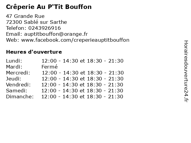 Termes de recherche pour Crêperie Au P'Tit Bouffon:restaurant, boissons, au, p'tit, salee, sucré, crêperie, galettes, bouffon |