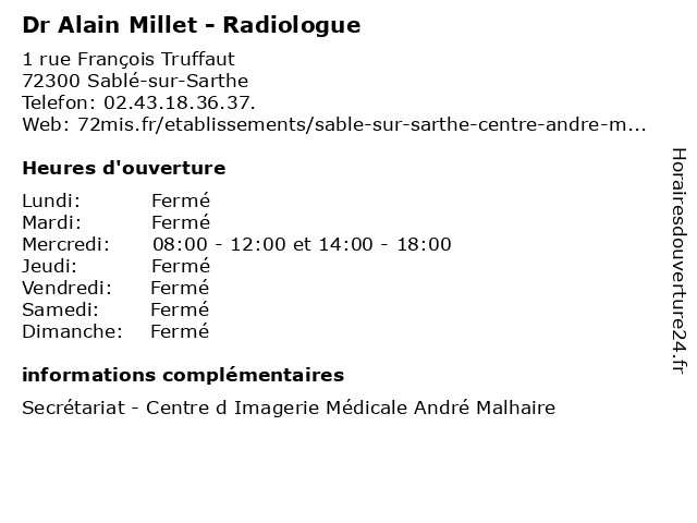 | Mercredi | 08:00-12:00 et 14:00-18:00 |