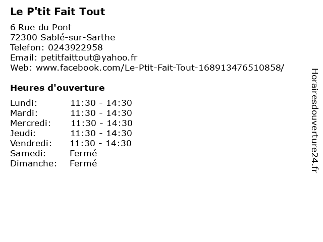 | Samedi | Fermé |