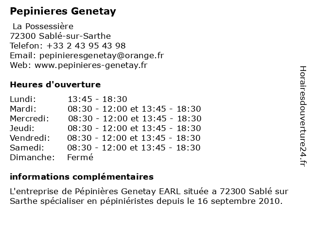 | Samedi | 08:30-12:00 et 13:45-18:30 |