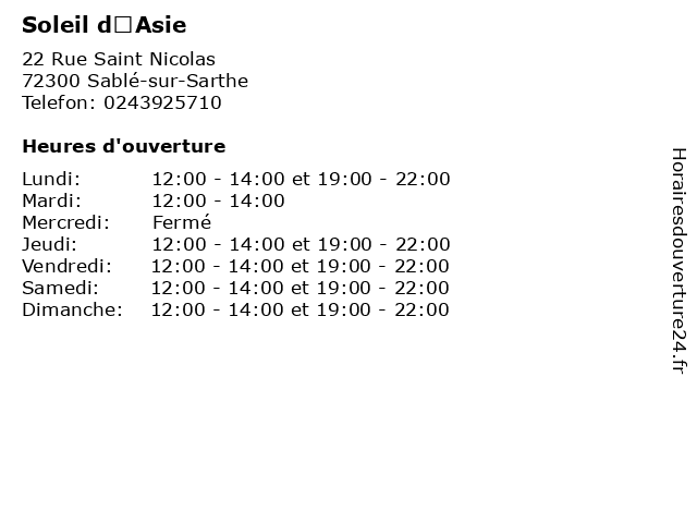 Lundi | 12:00-14:00 et 19:00-22:00 |