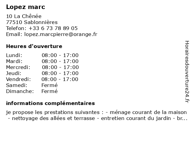 1 Champagne Marc Bijotat (Distance: 11,56 km) 70bis route Nationale, 02310 Romeny-sur-Marne bijotat, brut, champagne, doux, magnum, marc, vente, vins 2 Dr Marc Laouiti - Radiologue (Distance: 14,19 km) 9 bis Avenue Franklin Roosevelt, 77260 La Ferté Sous Jouarre consultation, docteur, dr, laouiti, marc, med, médecin, médecine, radiologue, traitement 3 Dr.Marc Gatfosse- Médecine interne (Distance: 15,19 km) 4 rue Gabriel Péri, 77120 Coulommiers consultation, docteur, dr.marc, gatfosse, interne, médecine, santé 4 Audition Marc Boulet Coulommiers (Distance: 16,54 km) 11 Place du Marché, 77120 Coulommiers audition, boulet, coulommiers, marc 6 Dr Roberto Mananas Lopez - Chirurgien-dentiste (Distance: 44,13 km) 12 Rue de Torcy, 77400 Saint-Thibault-des-Vignes chirurgie, chirurgien, dentaire, dentiste, dr, lopez, mananas, roberto |