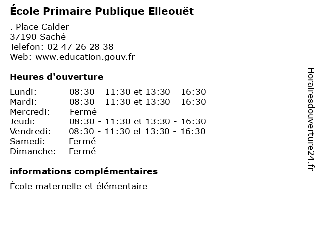 | Mardi | 08:30-11:30 et 13:30-16:30 |