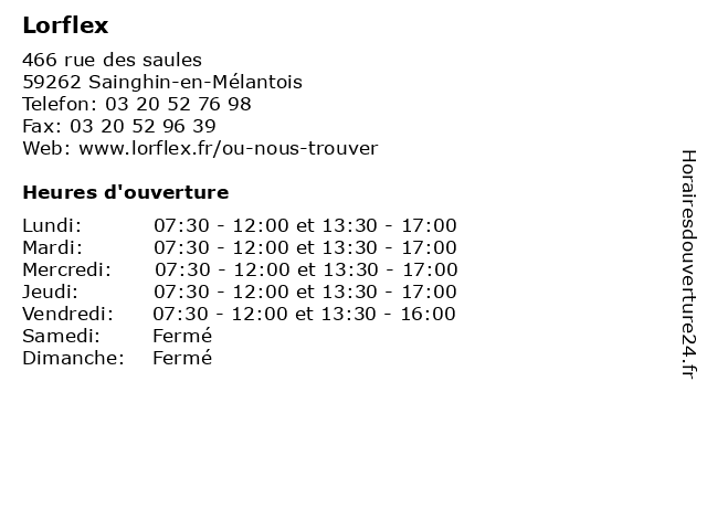 | Lundi | 07:30-12:00 et 13:30-17:00 |