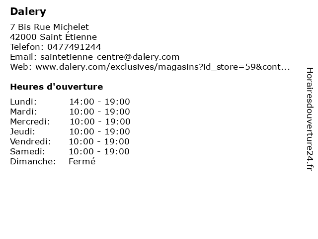 1 Dalery (Distance: 2,65 km) 2 rue Ferrer, 42000 Saint Étienne accessoires, bagages, boutique, dalery, maroquinerie, mode 2 Dalery (Distance: 10,50 km) 8 Rue Charles de Gaulle, 42240 Unieux bagagerie, bijouterie, dalery, maroquinerie 3 Dalery (Distance: 14,29 km) - ZA de Migalon, 42160 Andrézieux-Bouthéon accessoires, bagages, boutique, dalery, maroquinerie, mode 4 Dalery Store (Distance: 2,09 km) . De Monthieu, 42030 St. Etienne beaute, cafe, chaussures, dalery, enfants, maison, mode femmes, mode hommes, restaurant, sport, store 5 Dalery (Distance: 36,19 km) 1515 Avenue Frédéric Mistral, 38760 Chasse sur rhone accessoires, bagages, boutique, dalery, maroquinerie, mode 6 TG Concept (Distance: 45,42 km) 27 Avenue des Saules, 69600 Oullins concept, filtrage, ingénierie, inspection, poste, système, tg, traitement bagages |