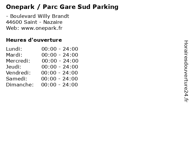 1 Onepark / Sernam Parking (Distance: 0,00 km) - Boulevard Willy Brandt, 44600 Saint - Nazaire onepark, parking, sernam, services 2 Onepark / Willy Brant Parking (Distance: 0,00 km) - Boulevard Willy Brandt, 44600 Saint - Nazaire brant, onepark, parking, services, willy 3 Onepark / Coeur-de-Ville Parking (Distance: 0,75 km) 1 Passage des Halles, 44600 Saint - Nazaire coeur, de, onepark, parking, services, ville 4 Onepark / 8 et 11 mai 1945 Parking (Distance: 0,94 km) - Place des 8 et 11 Mai 1945, 44600 Saint - Nazaire 11, 1945, et, mai, onepark, parking, services 5 Onepark / Maison des Syndicats Parking (Distance: 1,10 km) 8 Allée des Caraïbes, 44600 Saint - Nazaire des, maison, onepark, parking, services, syndicats 6 Onepark / Antilles Parking (Distance: 1,16 km) - Rue des Frères Pereire, 44600 Saint - Nazaire antilles, onepark, parking, services |