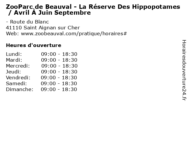 | Dimanche | 09:00-18:30 |