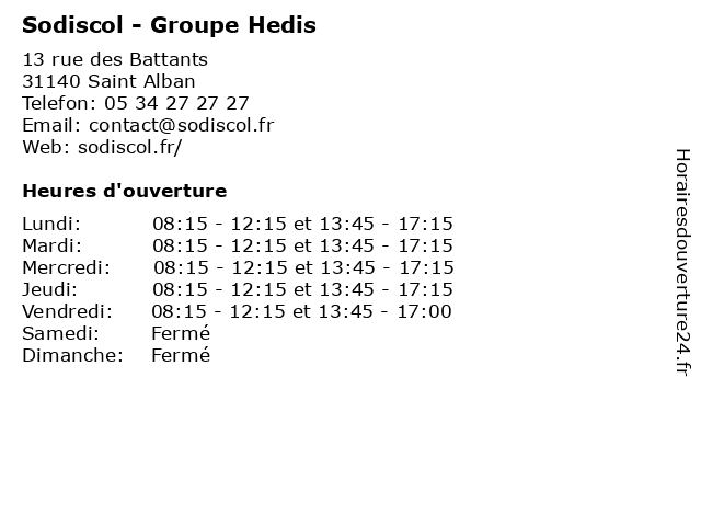 | Mardi | 08:15-12:15 et 13:45-17:15 |