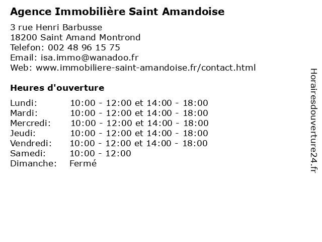 | Dimanche | Fermé |