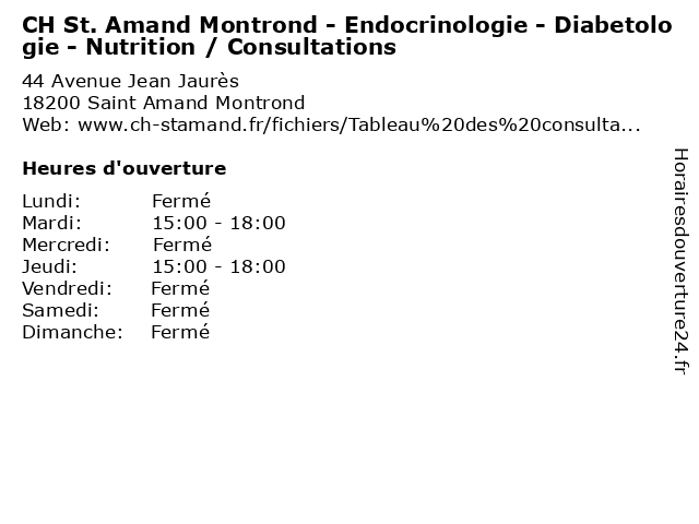1 CH St. Amand Montrond - Endocrinologie - Diabetologie - Nutrition / Consultations (Distance: 0,66 km) 11 Avenue de la Gare, 18200 Orval amand, bureau, ch, consultation, consultations, diabetologie, dr, endocrinologie, maladie, med, montrond, médecin, médecine, nutrition, pratique, st., thérapie, traitement 2 CH St. Amand Montrond - Endocrinologie - Diabetologie - Nutrition / Consultations (Distance: 0,86 km) - Place de la République, 18200 Saint Amand Montrond amand, bureau, ch, consultation, consultations, diabetologie, dr, endocrinologie, maladie, med, montrond, médecin, médecine, nutrition, pratique, st., thérapie, traitement 3 CH St. Amand Montrond - Endocrinologie - Diabetologie - Nutrition / Consultations (Distance: 1,53 km) - Rue de La Fontaine Saint Martin, 18200 Saint Amand Montrond amand, bureau, ch, consultation, consultations, diabetologie, dr, endocrinologie, maladie, med, montrond, médecin, médecine, nutrition, pratique, st., thérapie, traitement 4 CH St. Amand Montrond - Endocrinologie - Diabetologie - Nutrition / Consultations (Distance: 1,58 km) - Rue de la Croix Duchet, 18200 Saint Amand Montrond amand, bureau, ch, consultation, consultations, diabetologie, dr, endocrinologie, maladie, med, montrond, médecin, médecine, nutrition, pratique, st., thérapie, traitement 5 CH St. Amand Montrond - Cardiologie / Consultations (Distance: 0,00 km) 44 Avenue Jean Jaurès, 18200 Saint Amand Montrond amand, bureau, cardiologie, ch, consultation, consultations, dr, maladie, med, montrond, médecin, médecine, pratique, st., thérapie, traitement 6 CH St. Amand Montrond - Cardiologie / Echocardiographies (Distance: 0,00 km) 44 Avenue Jean Jaurès, 18200 Saint Amand Montrond amand, bureau, cardiologie, ch, consultation, dr, echocardiographies, maladie, med, montrond, médecin, médecine, pratique, st., thérapie, traitement |