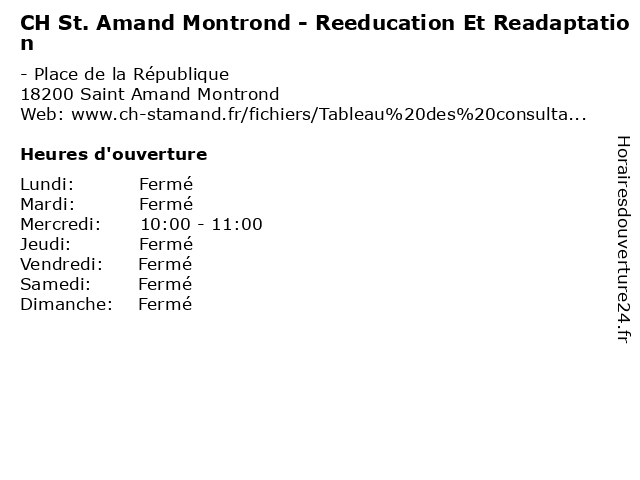 | Samedi | Fermé |