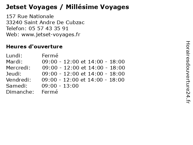 | Lundi | Fermé |